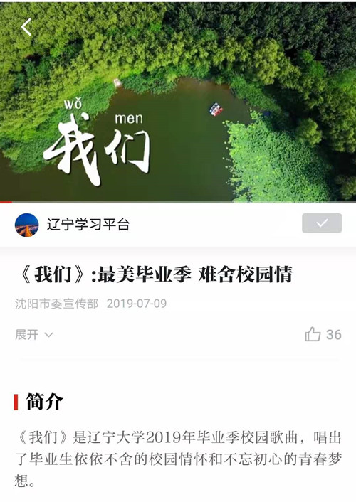 7月9日,“学习强国”于辽宁学习平台发布我校拍摄的毕业季校园歌曲《我们》,现将链接转载如下:
