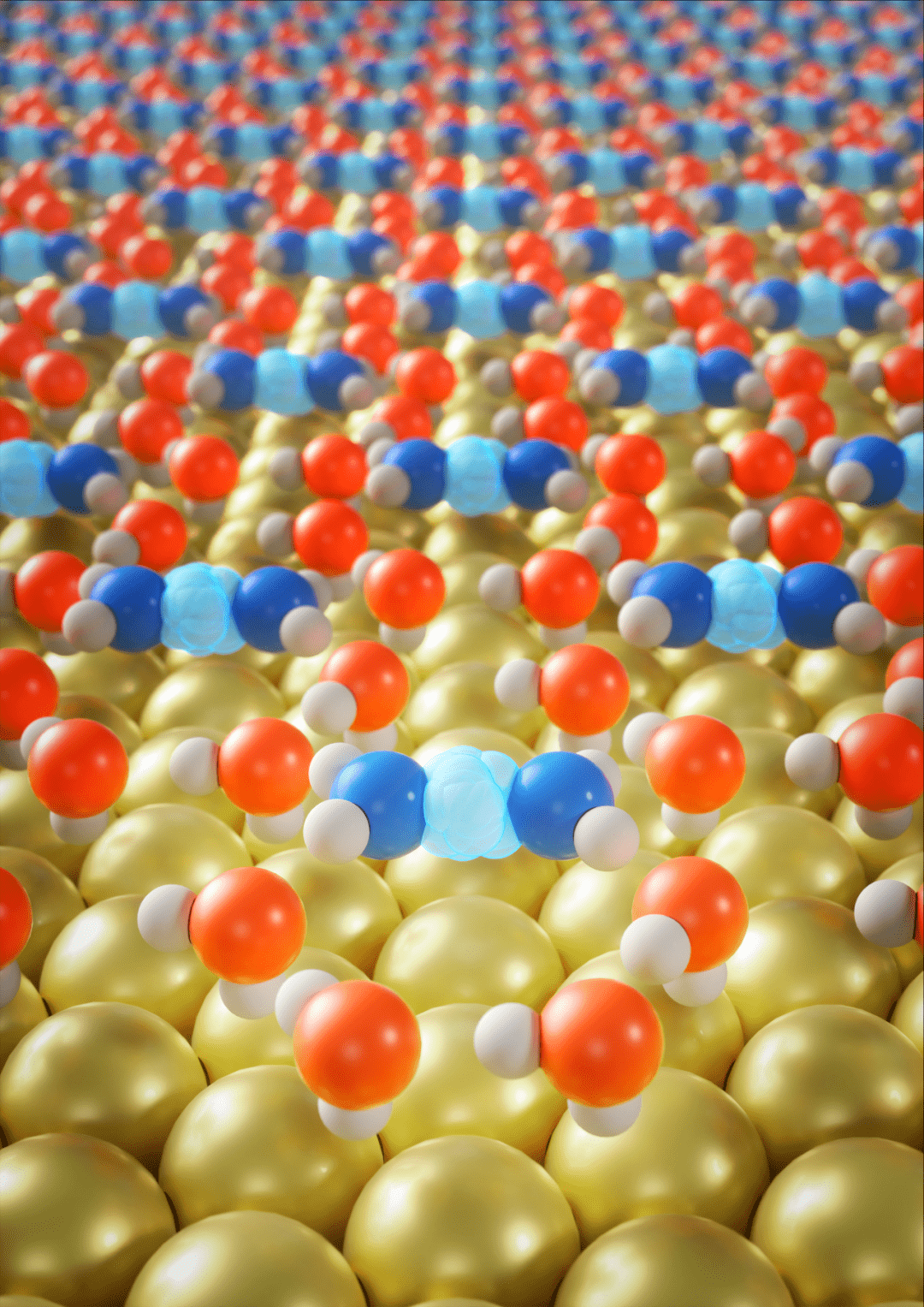 图1. 对称氢键构型二维冰的艺术效果图 (被《Science》期刊网站选为首页图片)