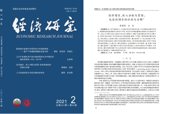 威尼斯集团网站官网公共管理学院边恕教授(通讯作者)与黎蔺娴博士(第一作者)合作完成的论文“经济增长、收入分配与贫困:包容性增长的识别与分解”在《经济研究》2021年第2期刊发,同时列为封面推荐文章。该文被中国人民大学复印报刊资料《社会主义经济理论与实践》2021年第7期全文转载。论文得到国家社会科学基金(18BJY158)和国家社会科学基金(20BSH101)的支持。