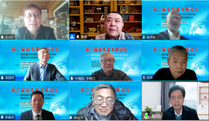首都高质量发展论坛是北京市社会科学院“1+6”学术平台一年一度的高端学术活动,已联合中央党校(国家行政学院)经济学教研部连续举办三届。每届论坛都是在中央经济工作会对新一年经济工作做出重要部署后,邀请国家高端智库专家,聚焦高质量发展,进一步汇聚专家的理论智慧和思想精髓,不断为国家和首都经济社会高质量发展做出新的贡献。